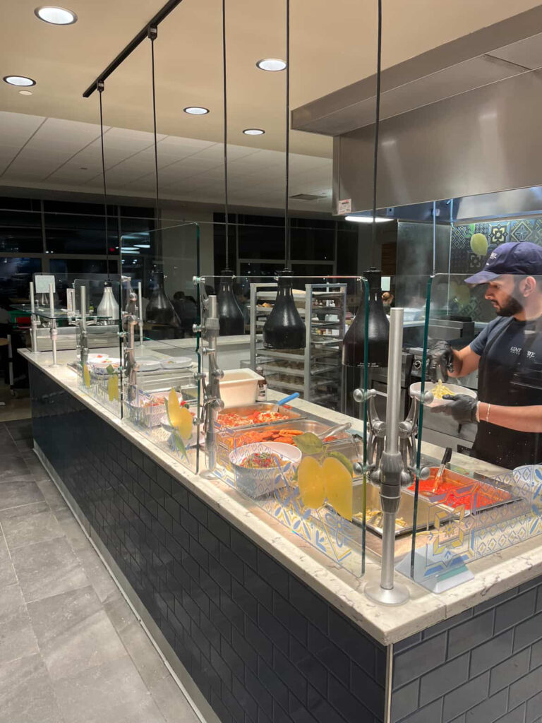 食堂にはグルテンフリーのセクション、ベジタリアン用のセクション、ハラル用のセクションなど、いろんな選択肢があると言います。