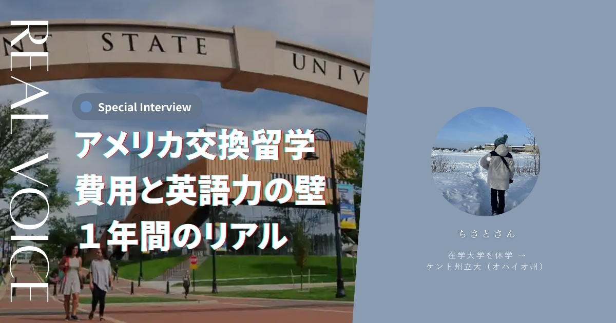 今回お話を聞いたのは、そんな迷いを抱えながらも、アメリカ・オハイオ州のケント州立大学へ交換留学した、ちさとさんです。(2026年1月取材)