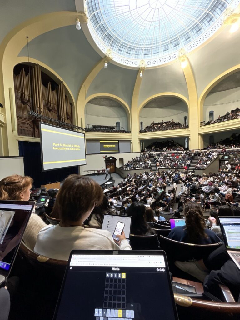 1年生や2年生のうちは、基礎的な科目をみんなで履修するため、クラスサイズが非常に大きくなる。数百人は当たり前、なかには1000人規模のレクチャーもあったといいます。