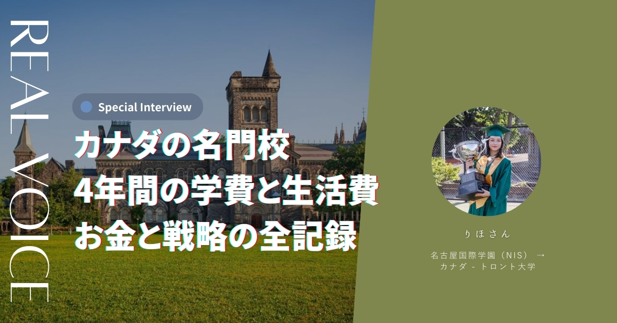 もうひとつ、この記事では触れきれなかったのが、お金の話です。りほさんはUCバークレーにも合格しています。それでもトロント大学を選んだ。その判断の裏には、奨学金の具体的な金額と、4年間の配分がありました。